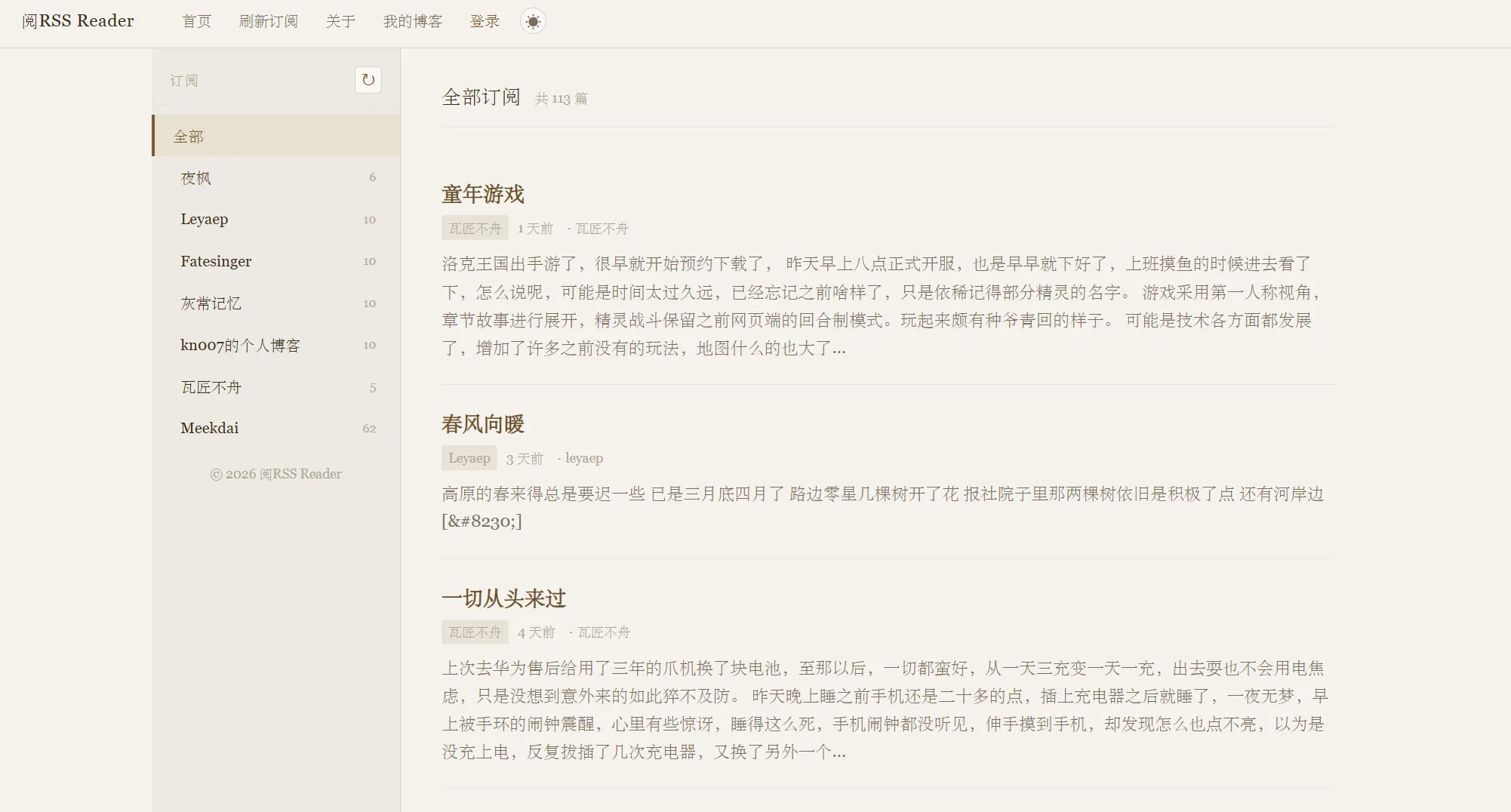 之前折腾过多款Rss订阅器,有第三方的,也有自己写的,使用和体验都不太符合自己的要求,就如之前的RssX阅读器吧,有点简陋,外观比较丑陋,没有好的视觉体验,底层代码和样式代码比较混乱,懒得下手去看,去改动美化。然而,这次的阅读器主打一个简单、简约、高效,同时功能也比较完善,多亏与多次迭代(AI + 手动调整细节),整体我是很满意的。